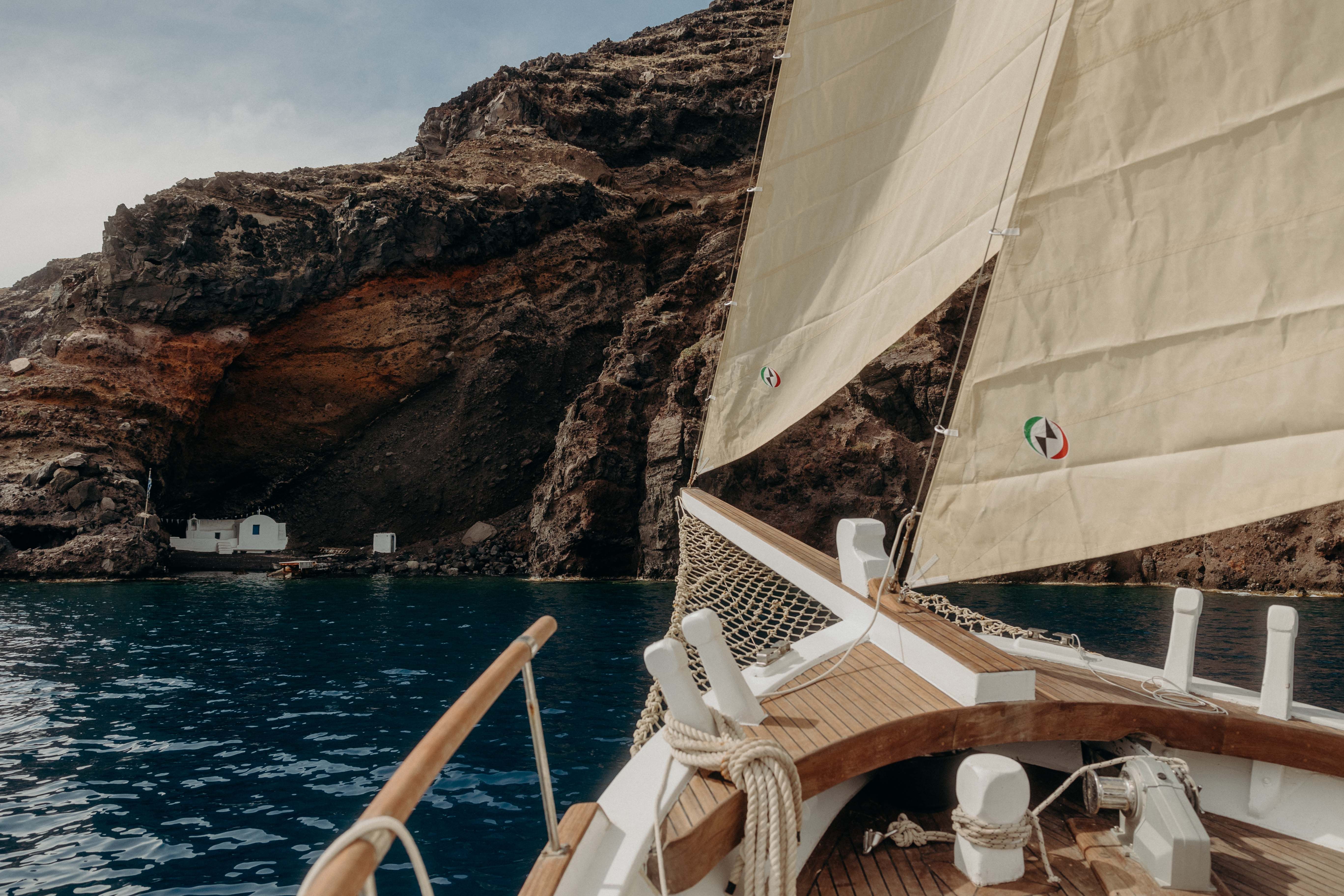 Kymatia is a beautifully restored traditional wooden sailboat that perfectly embodies the charm and heritage of Santorini. Carefully crafted to provide an authentic and eco-friendly sailing experience, Kymatia offers a unique way to explore the island's stunning waters. As you sail through the Caldera, you'll be immersed in the island's natural beauty, with panoramic views of the cliffs, volcanic islands, and the iconic blue-domed buildings that make Santorini famous.